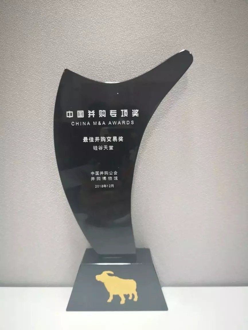 12月9日,由中國(guó)并購(gòu)公會(huì)和并購(gòu)博物館主辦的第十一屆中國(guó)并購(gòu)專項(xiàng)獎(jiǎng)?lì)C獎(jiǎng)典禮在深圳舉行。2018“中國(guó)并購(gòu)專項(xiàng)獎(jiǎng)”秉承往屆專業(yè)角度和權(quán)威評(píng)判的原則,根據(jù)創(chuàng)新、精巧、影響和整合等評(píng)選標(biāo)準(zhǔn)由專家評(píng)委會(huì)評(píng)定。天堂硅谷控股母公司硅谷天堂憑借在并購(gòu)業(yè)務(wù)中的專業(yè)表現(xiàn),榮獲“最佳并購(gòu)交易獎(jiǎng)”。